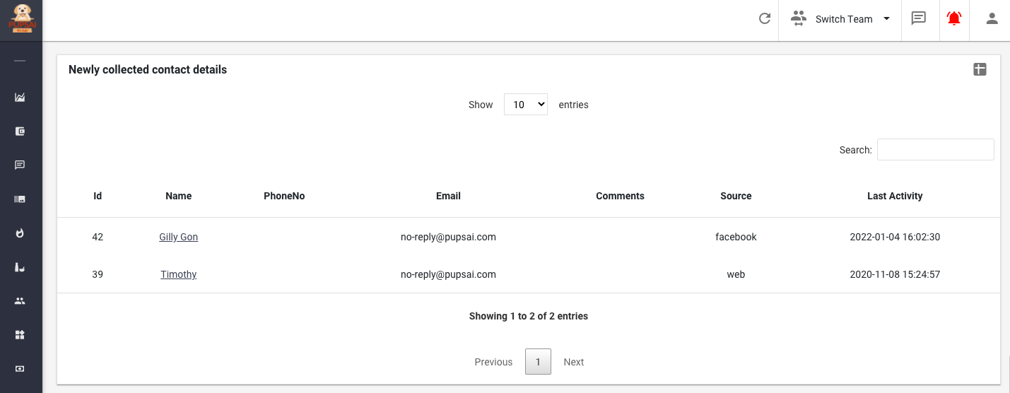 This is a type of lead analytics that lists all customer contact details collected in the last 30 days. The information collected includes:
