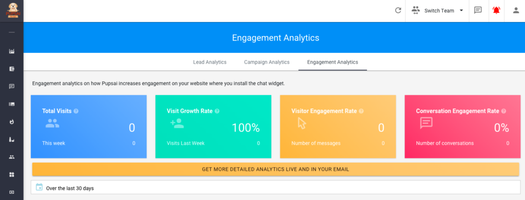 This is a type of engagement analytics that tells the increase in the number of users who visited pages with your chat widget, by comparing visits from the previous week. So Let’s get you one step closer to getting MORE customers and MORE help!